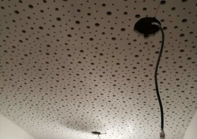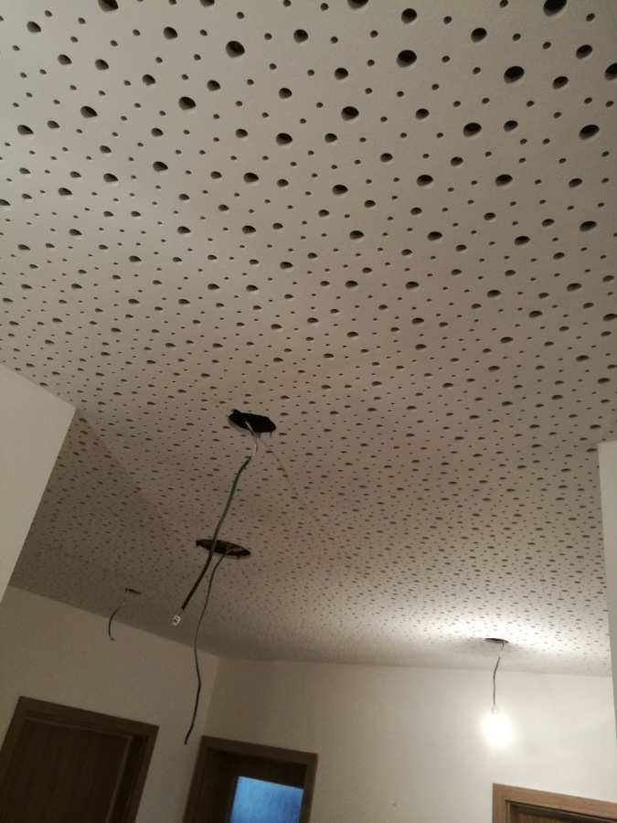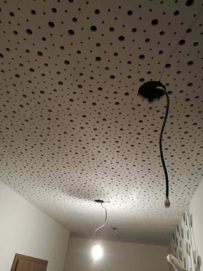Zákazník mne oslovil s dotazem na snížení doby dozvuku v bytě, kde hraje na piano. Po návštěvě vyplynulo, že má piano v předsíni. Zákazník si vybral design desky Cleaneo. Doba dozvuku se snížila celkem obstojně.