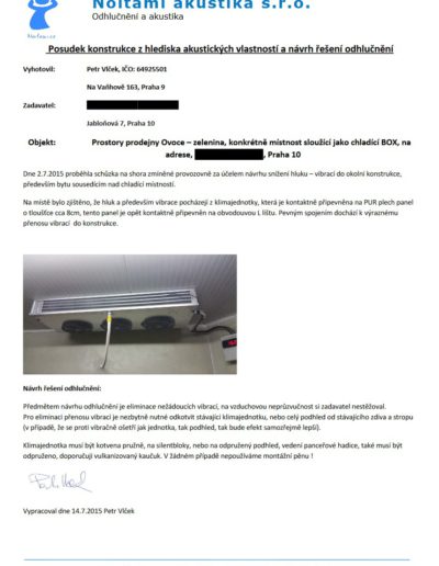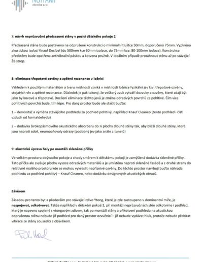 V případě, že byste chtěli odhlučnění od nás, ale jste příliš daleko od našeho místa působení nebo máte nějakou svoji oblíbenou firmu nebo jste šikulka sám osobně, ale nevíte jak na to, nabízíme vyhotovení odborných posudků. Podklady pro tyto posudky buď získáme z osobní návštěvy nebo elektronicky od Vás (materiálové skladby stěn, stropů, podlah, projektová dokumentace, fotografie atd.). Ve valné většině případů vytváříme posudky přímo my, v případě složitějších případů nebo pokud je posudek nutný jako důkazní materiál nebo jiný právní dokument, spolupracujeme s autorizovanými společnostmi a znalci.