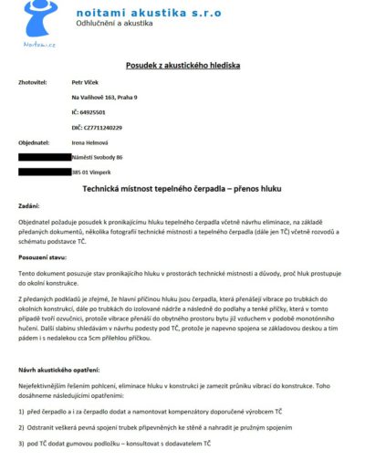 - Hladina akustického tlaku (čerpadla, kotle, konstrukční hluk)
