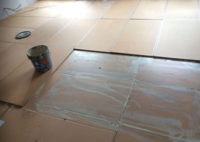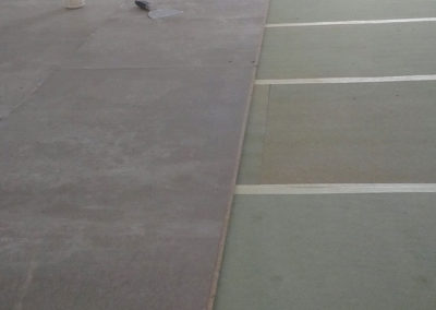 Jednalo se de facto o domácí zkušebnu na elektro bicí v dětském pokoji. Sousedé pod dětským pokojem byli obtěžováni hlukem, který vycházel z pedálu (šlapky) bicí soustavy. Návrh této podlahy tedy neměl za cíl nepropustit hluk vydávaný v prostoru místnosti, ani běžným chozením nebo užíváním bytu, takže byla navržena do jisté míry neobvyklá skladba, měkké kročejové izolace pod podlahovou krytinu krytinu Hobra a standardní miralon 3 mm, toto vše v opakované skladbě. Celkové zvýšení podlahy bylo do 20 mm, což byl i požadavek