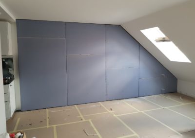 Odhlučnění provádíme přidáním další, dodatečné vícevrstvé konstrukce, která je složena z širokopásmového akustického absorbéru a neprůzvučného deskového materiálu. Oba tyto materiály mají diametrálně odlišné fyzikální vlastnosti, což je pro profesionální odhlučnění zcela zásadní. První z materiálů je velice porézní a má za úkol zvukové vlny v dutině akustické skladby rozptýlit a pohltit, druhý prvek musí vykazovat co největší možnou objemovou hustotu, chcete-li váhu. Tento materiál má za úkol nepropustit hluk v co možná nejširším spektru frekvencí. Tyto speciální skladby nabízíme v desítkách materiálových variant, záleží vždy na návrhu konkrétní akustické skladby.