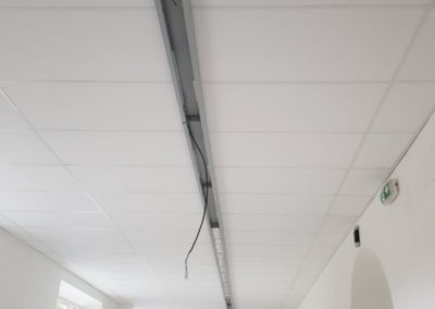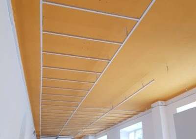 Chodba v Základní škole v Praze se nacházela v přízemí. Na chodbě se o přestávce pohybovalo několik desítek dětí, tato chodba také vedla k jídelně a tudíž byla vysoce frekventovanou. Odrazy zvuku byli velice nepříjemné, byla zde odhadem doba dozvuku kolem 6sek, po realizaci jsme zkrátily dobu dozvuku pod hodnotu 1,5sek. odhadem.
