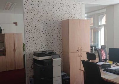 V kancelářských prostorách Centra pro přenos poznatků a technologií Univerzity Karlovy (CPPT) bylo třeba významně snížit dozvuk, aby se kolegové vzájemně nerušili při telefonátech nebo jednáních. Upravována byl hlavní kancelářský prostor „open space“ a hlavní zasedací místnost.