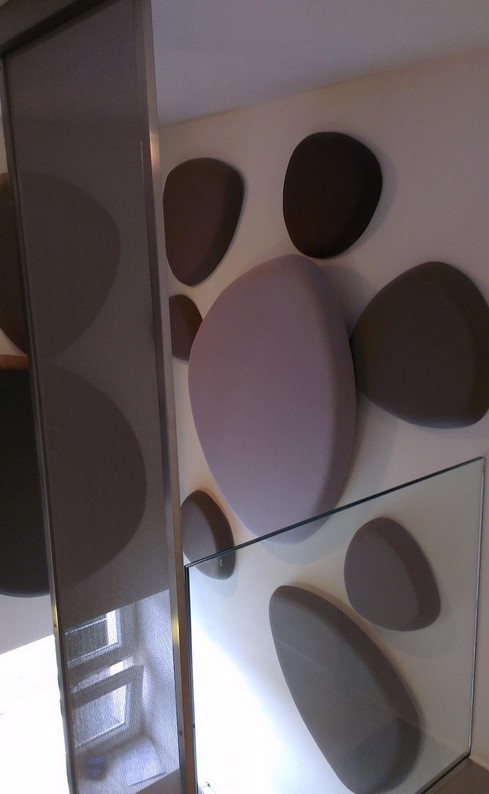 Naše společnost je držitelem patentu na designové akustické panely, které mají statut širokopásmového pohlcovače (dokáží pohlcovat zvuk v celém spektru frekvencí). Do prostoru bylo dodáno 23 kusů akustických panelů ve tvaru kamenů. Instalací panelů bylo docíleno eliminace odrážení zvuků.