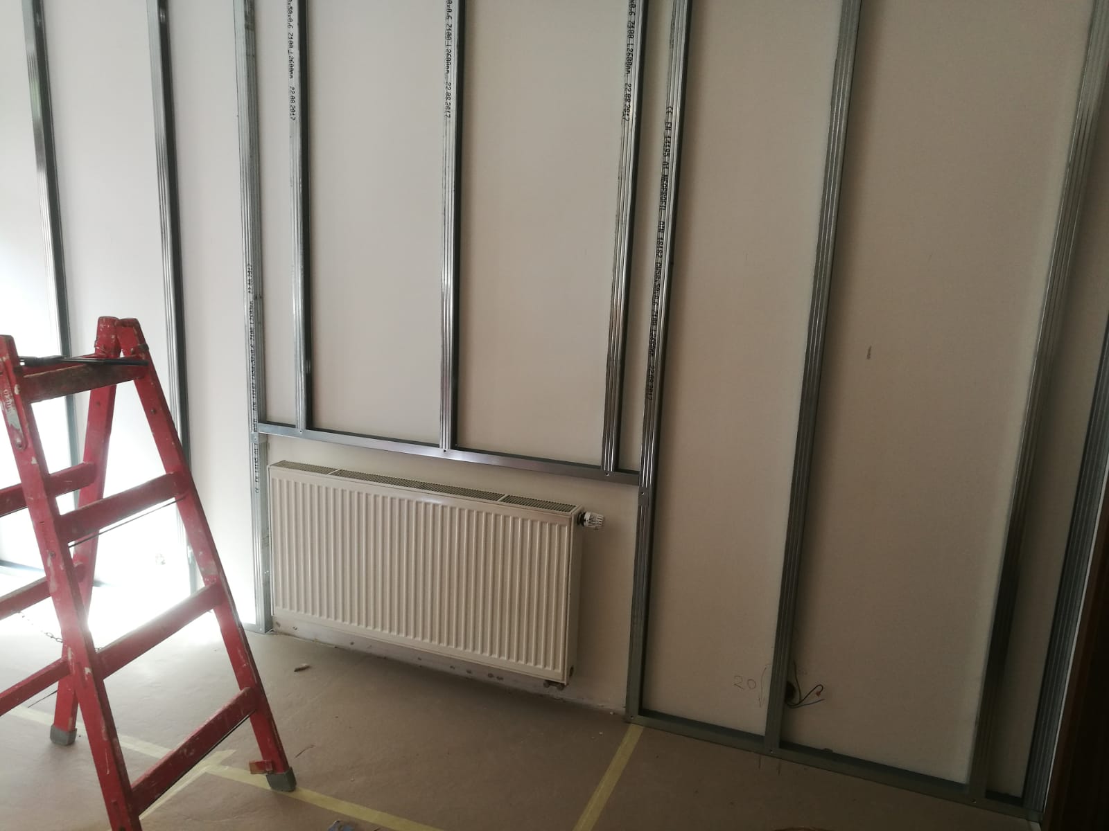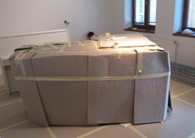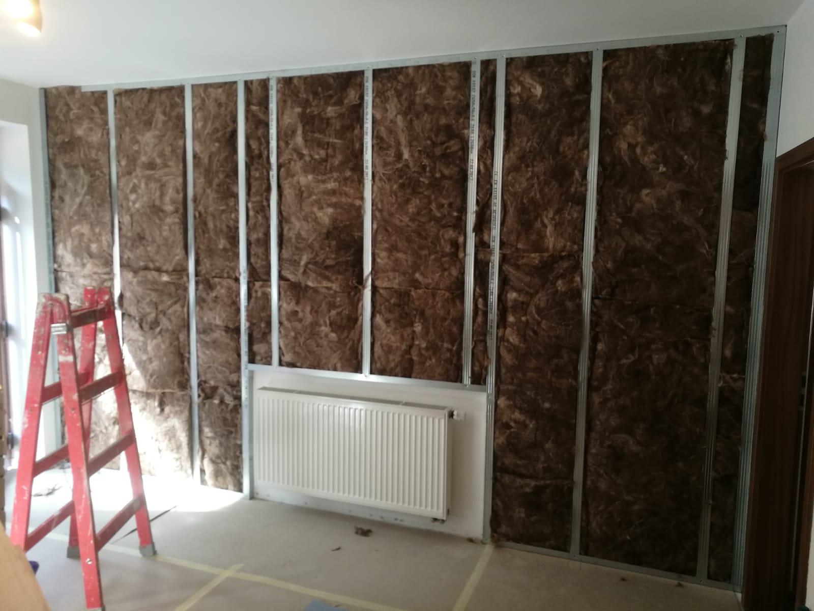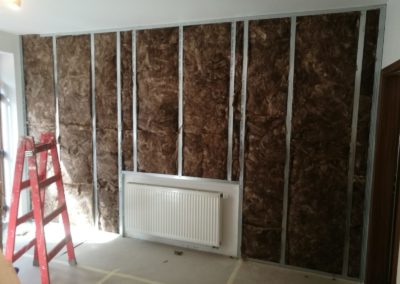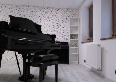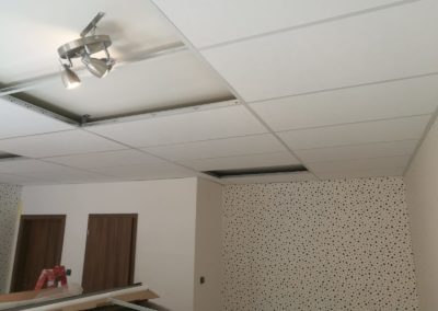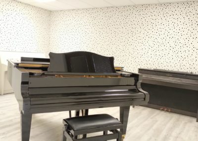 Kompletní dodávka akusticky pohltivých ploch pro domácí zkušebnu hry na klavír, montáž stěn Knauf Cleaneo a akustického rastrového podhledu EUROCOUSTIC a modulových svítidel ve spektru denního světla. Po úpravě vykazoval prostor dobu dozvuku kolem hodnoty 1,2s.