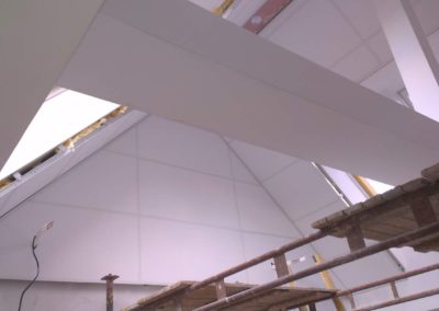 Byli jsme požádáni projektantem, abychom v co možná nejkratším možném termínu upravili dobu dozvuku v rekonstruovaném podkroví domova dětí a mládeže ve Šluknově. Byl navržen a dodán širokopásmový akustický panel Euroacoustic, a to jak do šikmin tak na stěny. Doba dozvuku byla zkrácena pod 1sek – teoretickým výpočtem. Doba realizace jeden den.