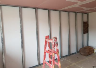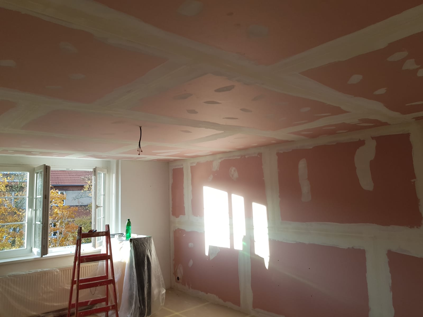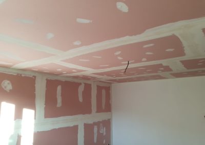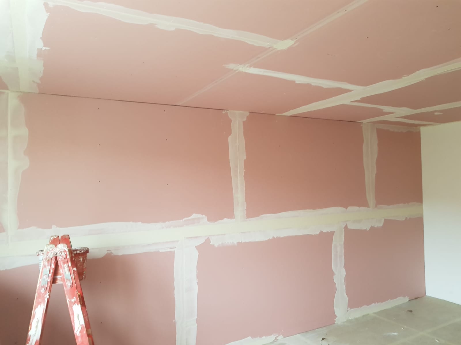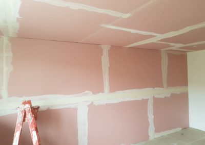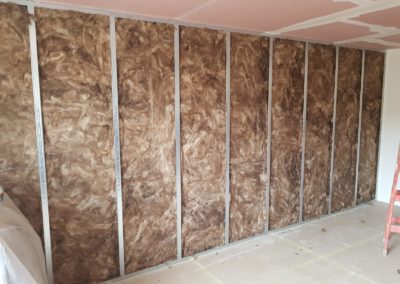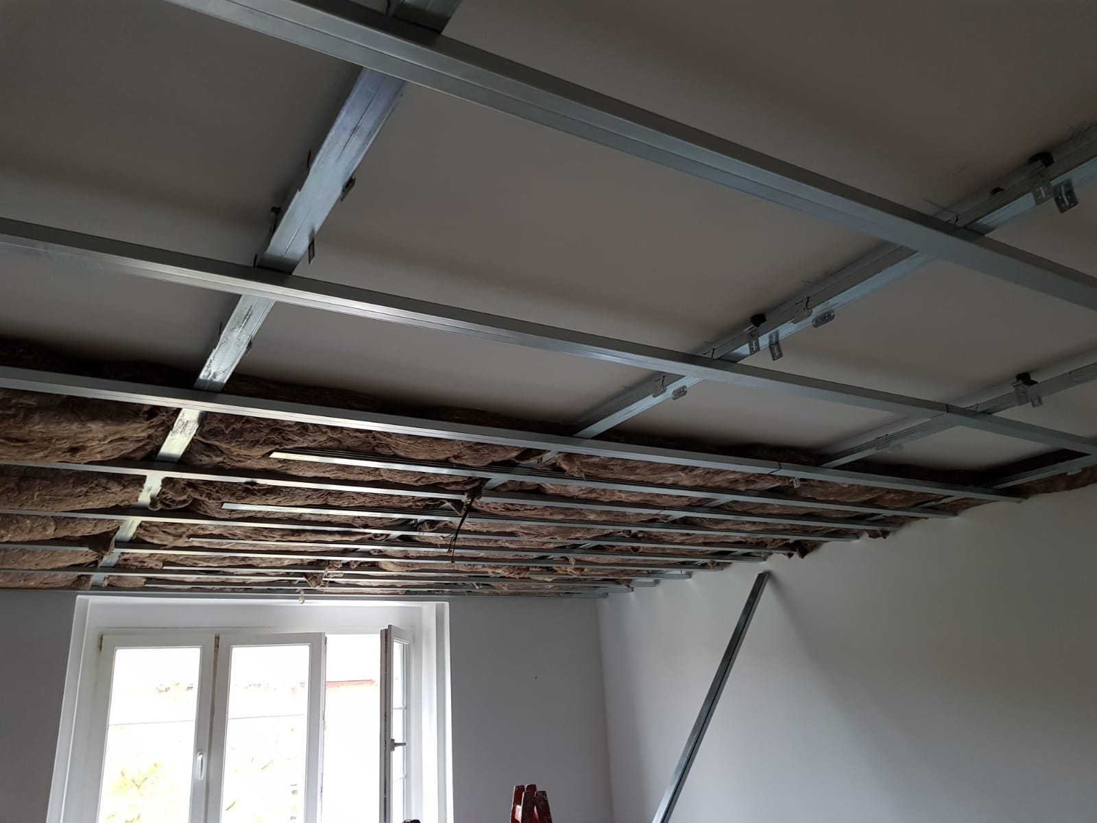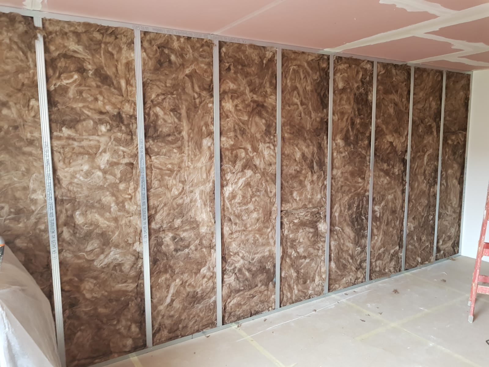 Odhlučnění stěny a stropu bytu, použitý materiál WOLF + deska RED Piano a Silent.