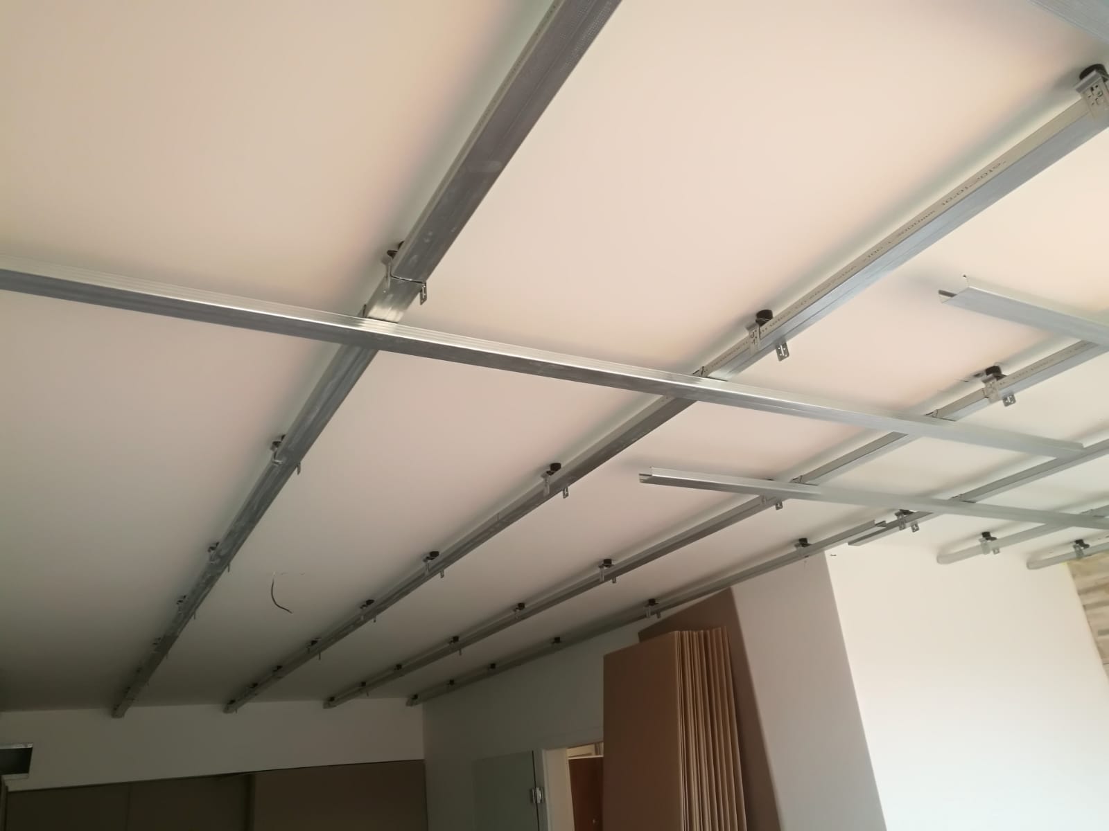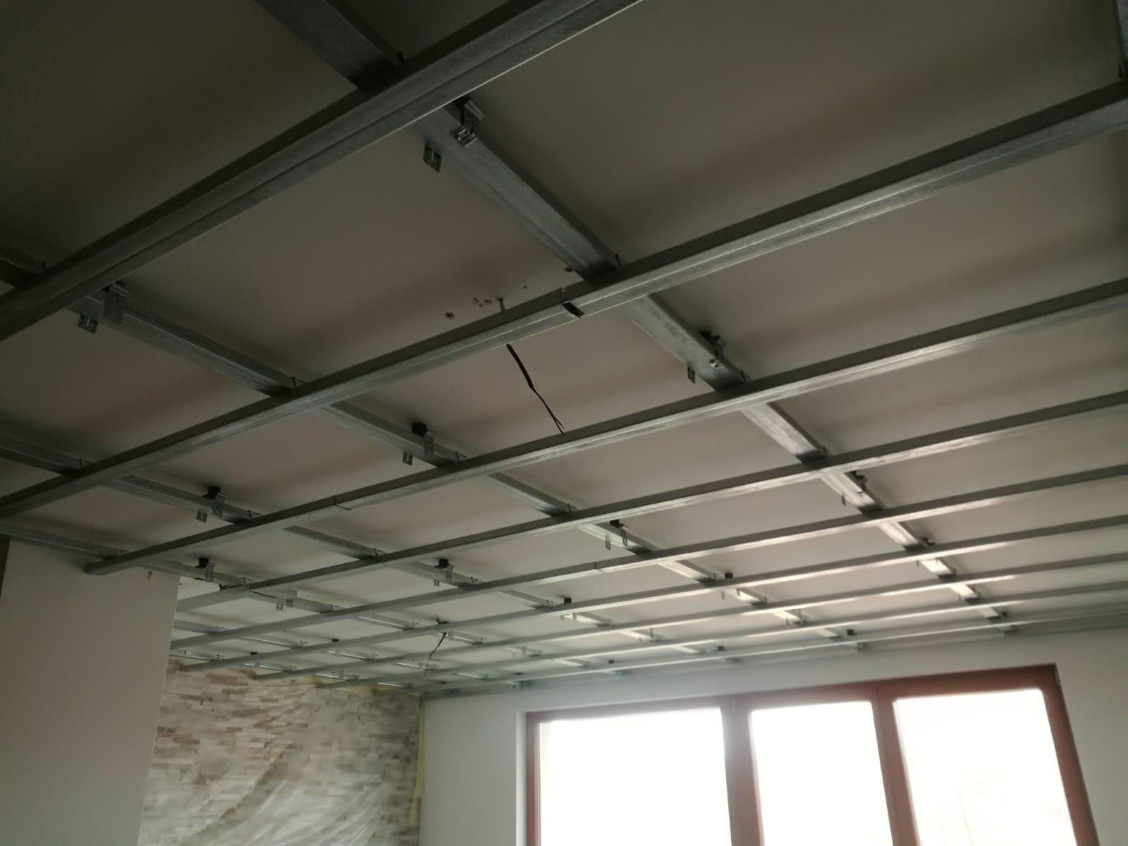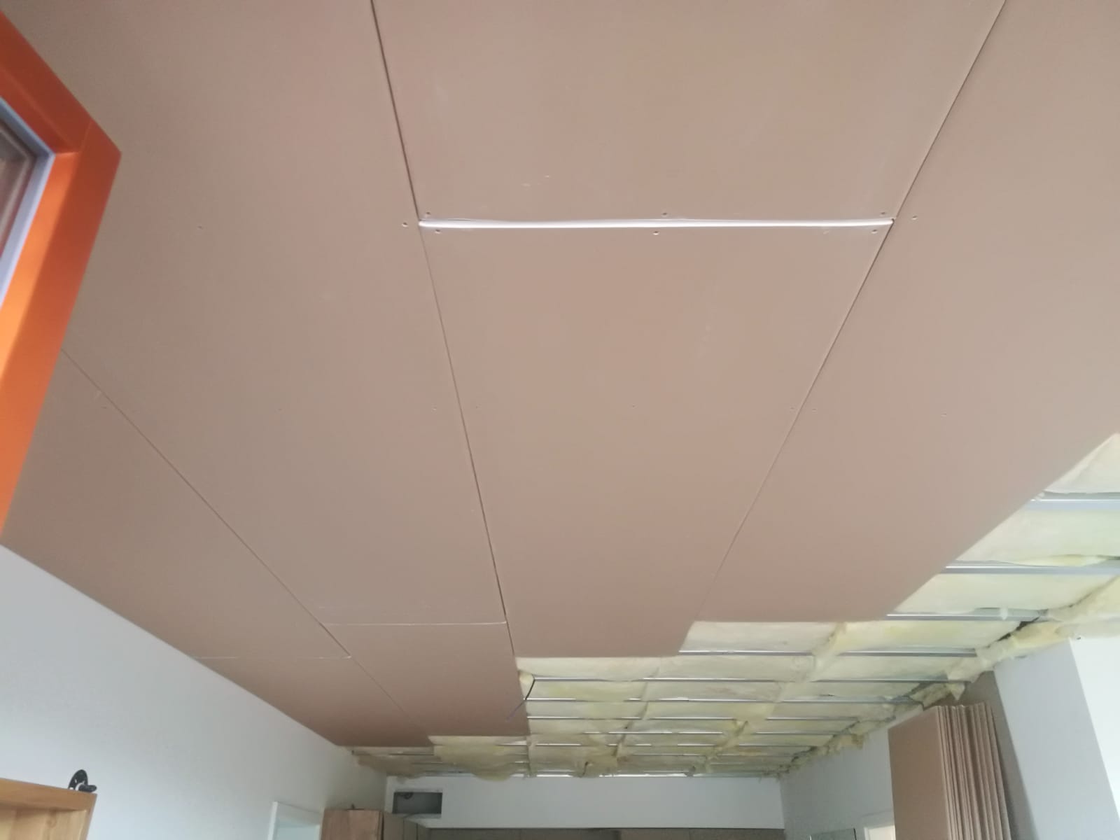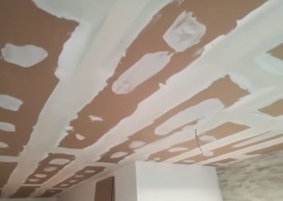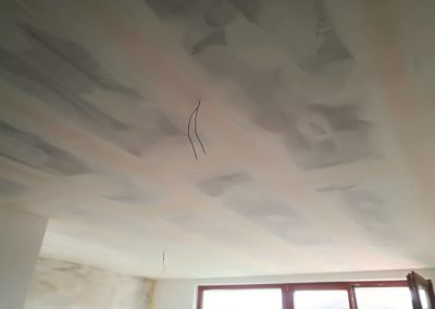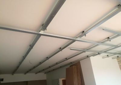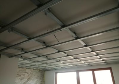 Bylo zde slyšitelné dupání a veškeré zvuky šířící se konstrukcí. Navržená skladba silentblokové pružné uchycení konstrukce, akustická izolace 4cm + 6cm, snížení podhledu o 13 – 16 cm, záklop deskou Knauf Silent. Zákazník bohužel i po realizaci vnímá hluky procházející skrz konstrukci podhledu a stěn.