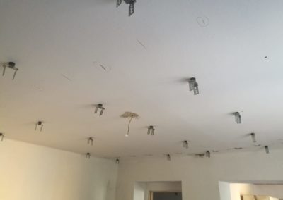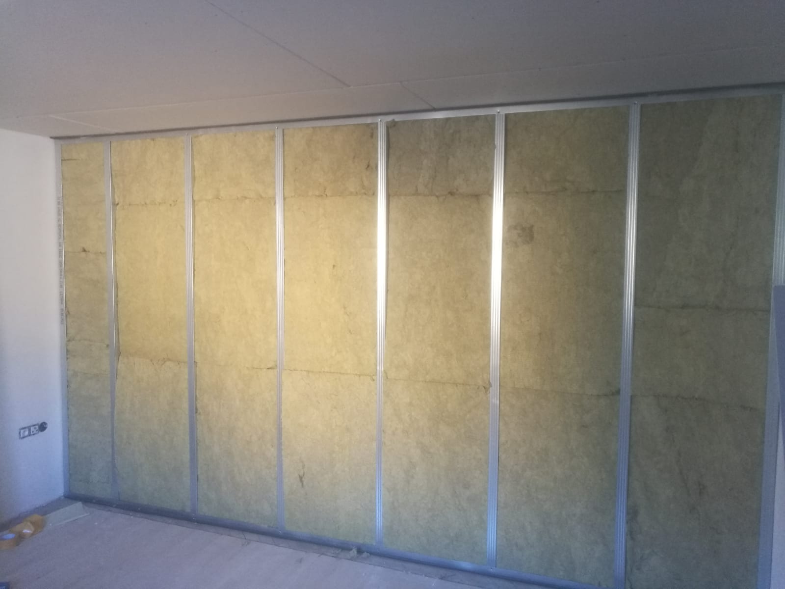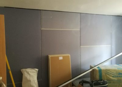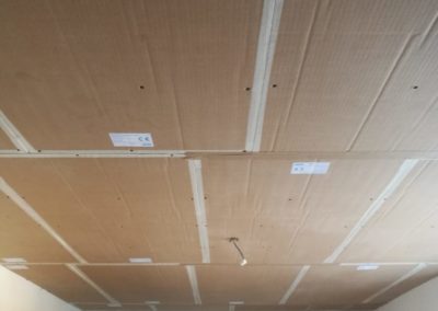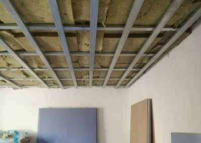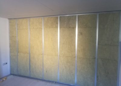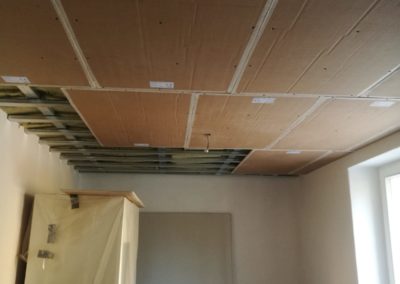 Panelákový byt z roku 1965, stropy z dutého betonu. Zákazník si nechal dutiny nafoukat izolací ale nadále vnímal hluk. Byl navržen neprůzvučný podhled na silentblokových závěsech s vloženým širokopásmovým akustickým absorbérem a zaklopen deskou WOLF TRI a deskou GKB. Další podhledy byly zaklopeny deskou Diamant. Tenké stěny a stěny k sousedům byly také obloženy neprůzvučným materiálem.