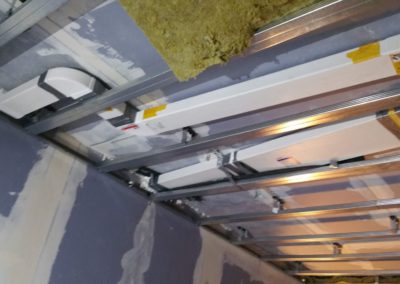 - Použité materiály: akustické izolace více druhů, neprůzvučná deska Lasound, pohltivá deska Knauf Cleaneo