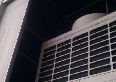 Manager hotelu mne oslovil s prosbou odhlučnění klima jednotky umístěné na dvoře. Na místě jsem zjistil, že klimajednotka je již starší a dosti přenáší vibrace do konstrukce. Navrhl jsem, aby se na klimajednotce vyměnila ložiska a proběhlo čištění a údržba. Tímto krokem klimajednotka ztichla takřka o polovinu. Další úpravou byly stavební dodávky prostoru, kde klimajednotka byla umístěna. Prostor (výklenek) byl vyplněn zvukově pohltivým materiálem, dodána dvojitá střecha a neprůzvučné stěny, vše bylo konsultováno s výrobcem klimajednotky tak, abychom dodrželi požadovaný průtok vzduchu potřebný k uchlazení média.