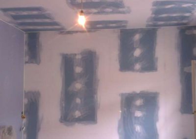 Čerstvě koupený byt na Praze 7, majitel demontoval podlahy a rozhodl se rovnou zvýšit neprůzvučnost slabých článků bytu. Realizovalo se odhlučnění stropu a stěny v ložnici.