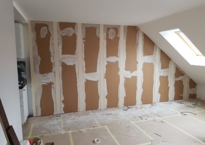 Dodatečně postavené podkrovní byty na Praze 5 Smíchov, stěny byly postaveny nelogicky z pórobetonových tvárnic Ytong 15 (cca 42dB). Hladina neprůzvučnosti byla velice nízká, i při tlumeném rozhovoru byl slyšet i význam mluveného slova.