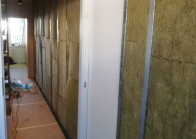 Abychom eliminovali hluk od sousedů co nejlépe zvolili jsme systém celoodpružené konstrukce s deskou WOLF TRI 15, která v těchto případech odvádí špičkovou práci. Aby byl výsledek co nejlepší použili jsme na další stěny desky Knauf Diamant.
