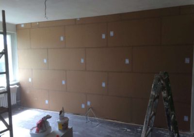 Obývák s ložnicí cca 20m2, stávající materiál stěn plná cihla, soused pod klientem si často, velice nahlas a i v pozdních hodinách pouštěl muziku, která se šířila a vyzařovala stěnami celé místnosti – vyjma fasádní stěny. Velice zřetelně pak byla slyšitelná část stěny, kde jsou komínové řády.