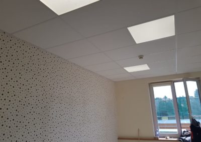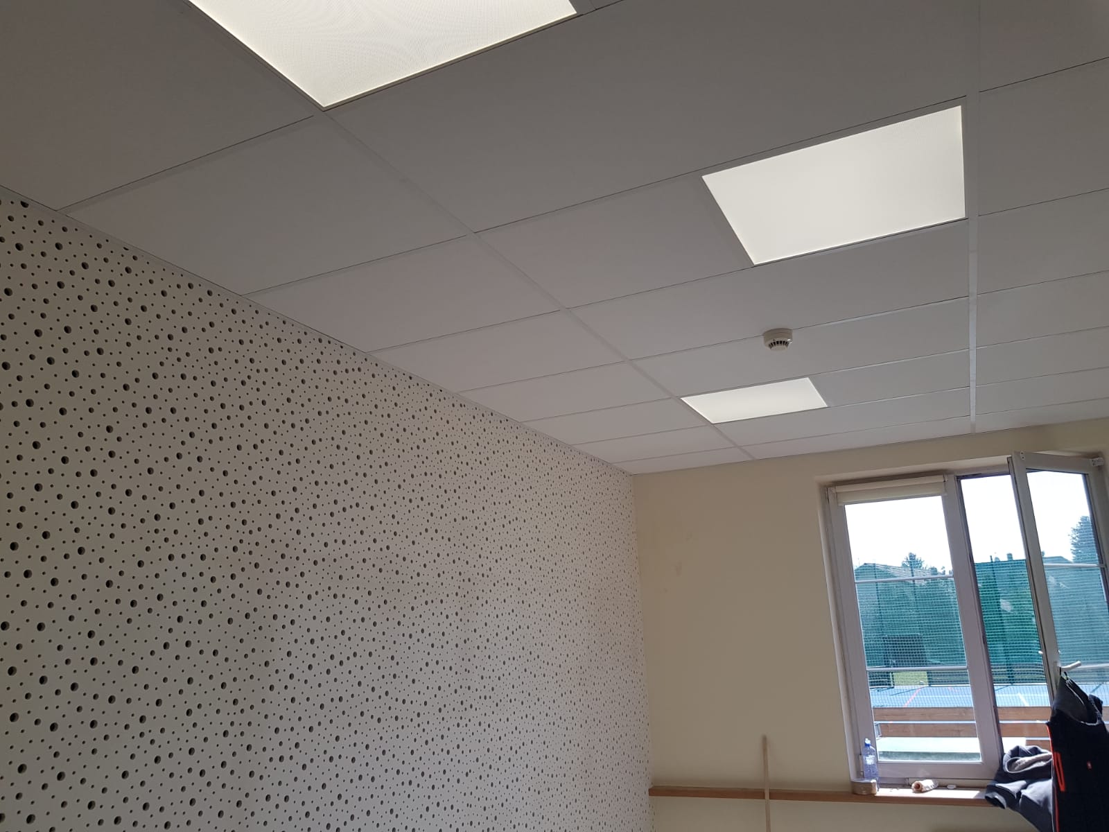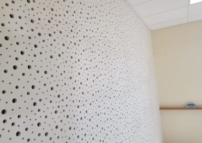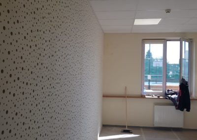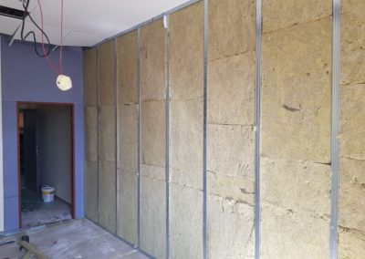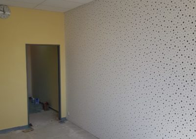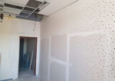 Základním požadavkem školy bylo zajištění zvýšení neprůzvučnosti stávající stěny a dveří. Byla navrhnuta neprůzvučná stěny, před ní akusticky pohltivá, na stropě dodán další akustický podhled a postavena příčka s dalšími dveřmi. Doba realizace 3 dny