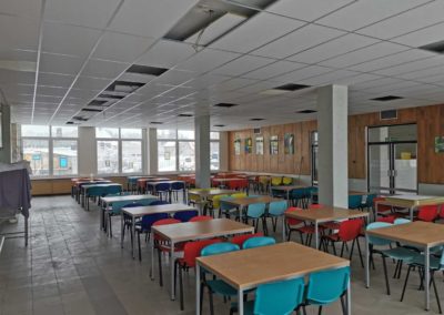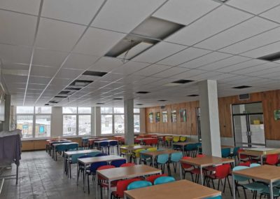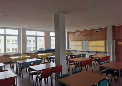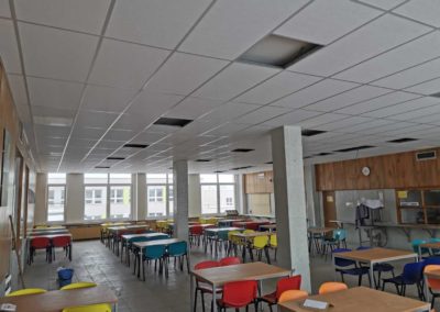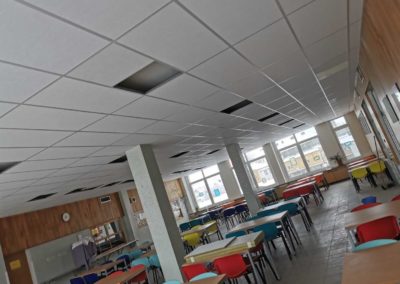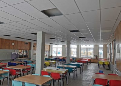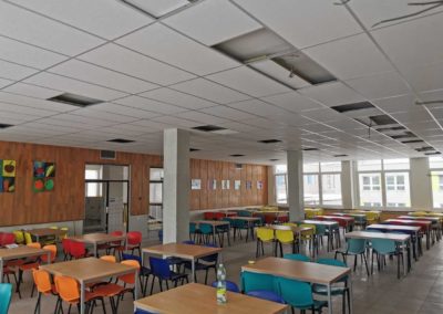 Realizace proběhla během víkendu, což umožnilo minimalizovat zásahy do provozu jídelny. Po provedení akustických úprav se podařilo dosáhnout požadované hodnoty doby dozvuku, která nyní splňuje normy a přispívá k příjemnějšímu prostředí pro strávníky i personál.