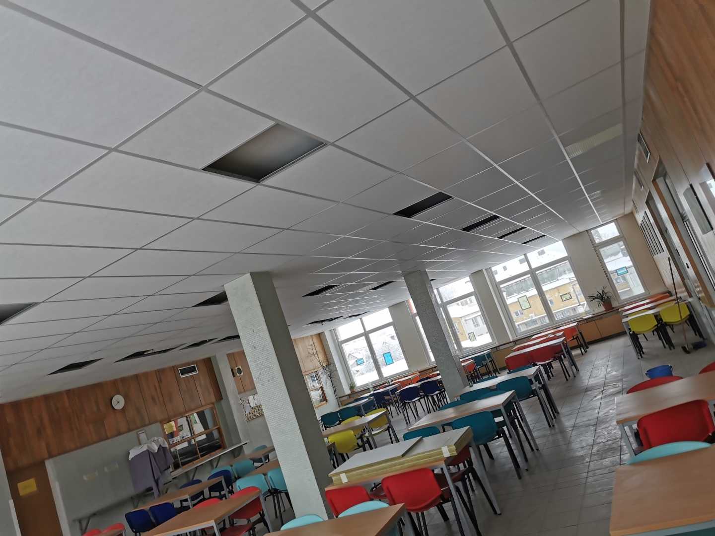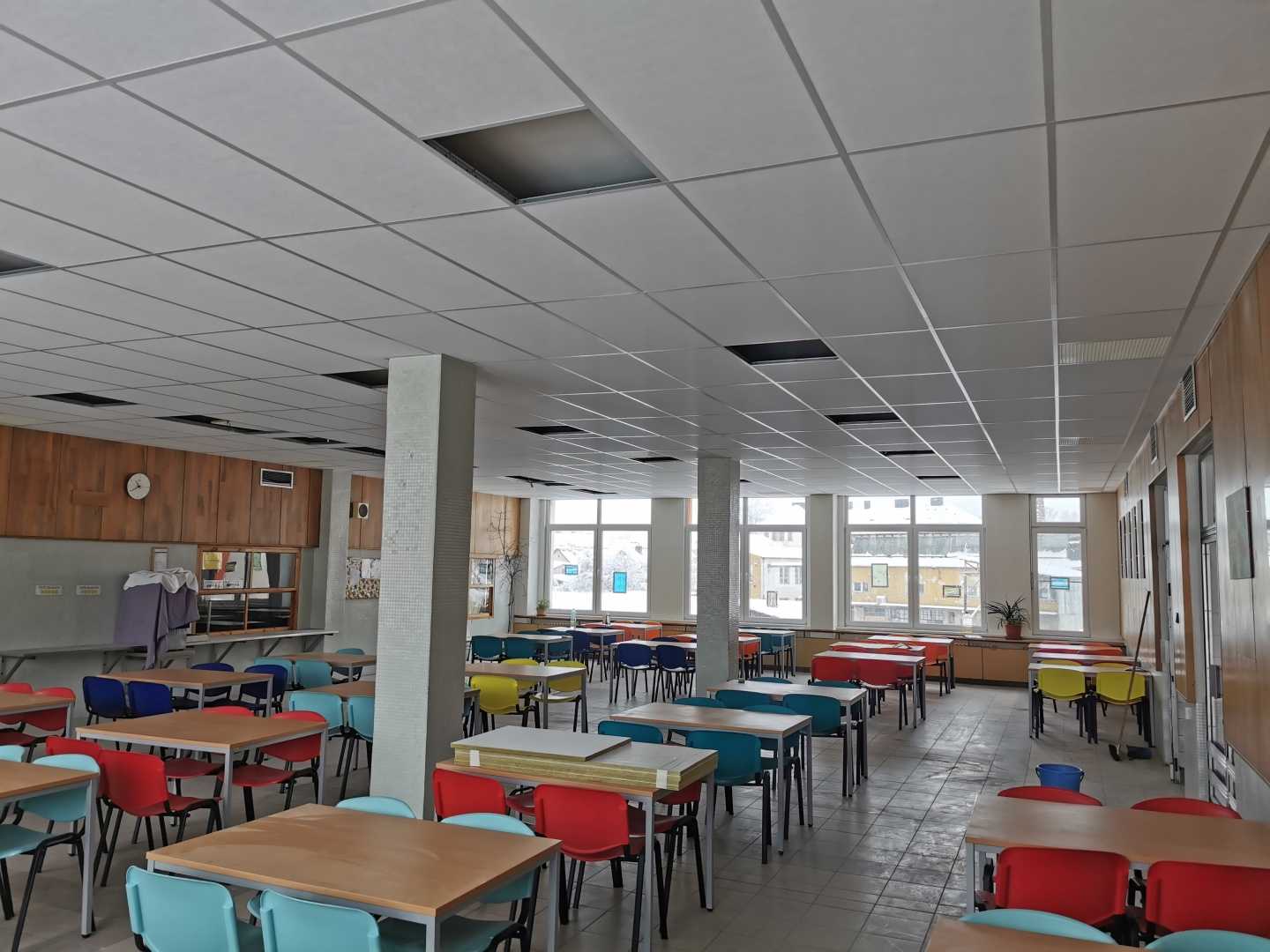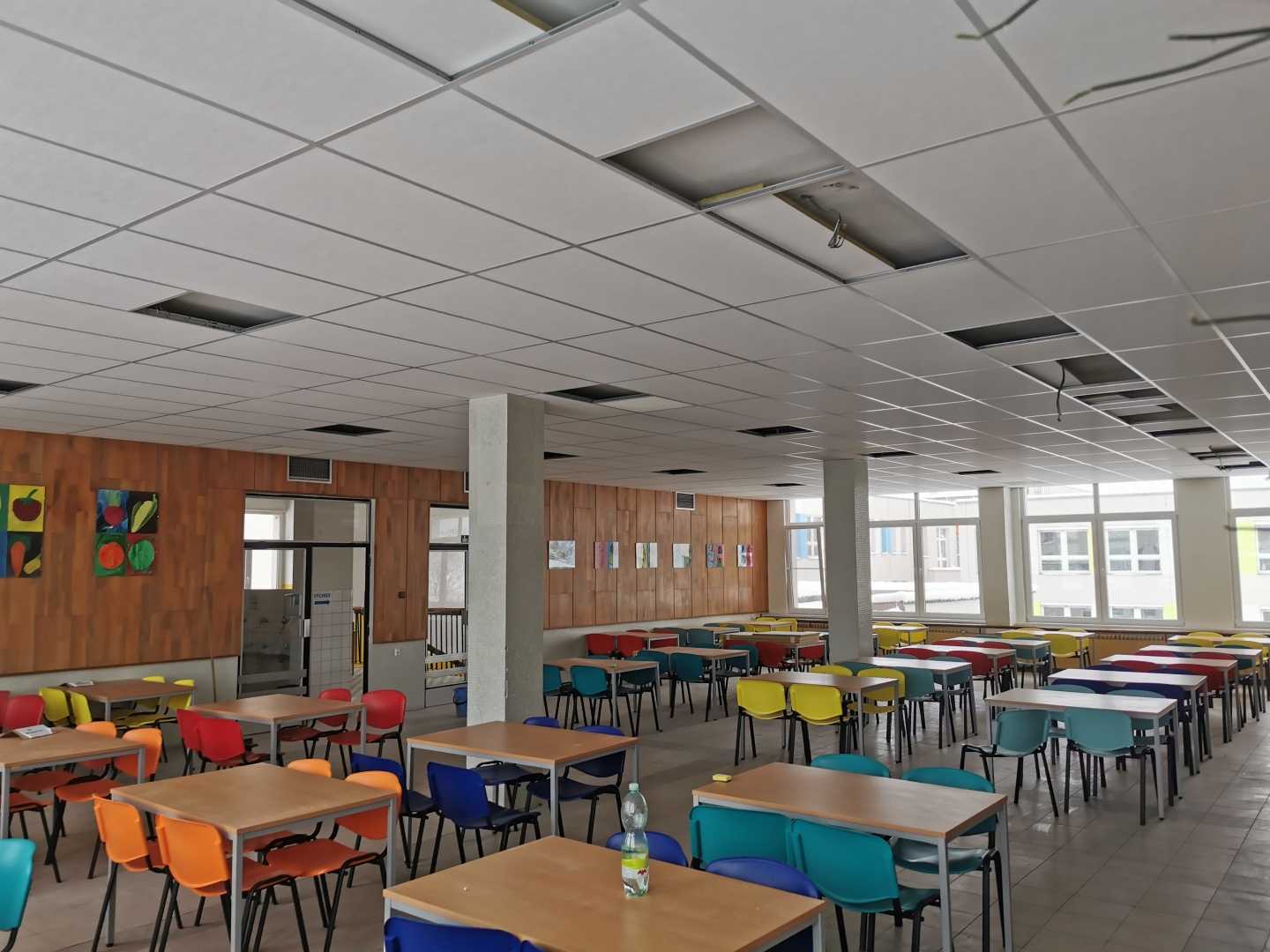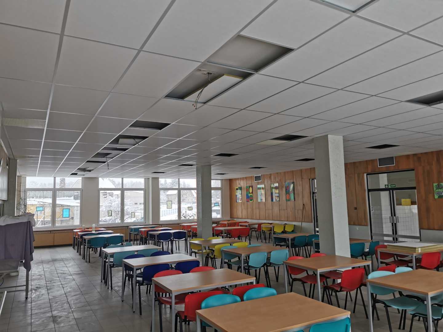 Úprava akustiky ve školní jídelně v Kaplici: Kvalitní řešení díky minerálním podhledům