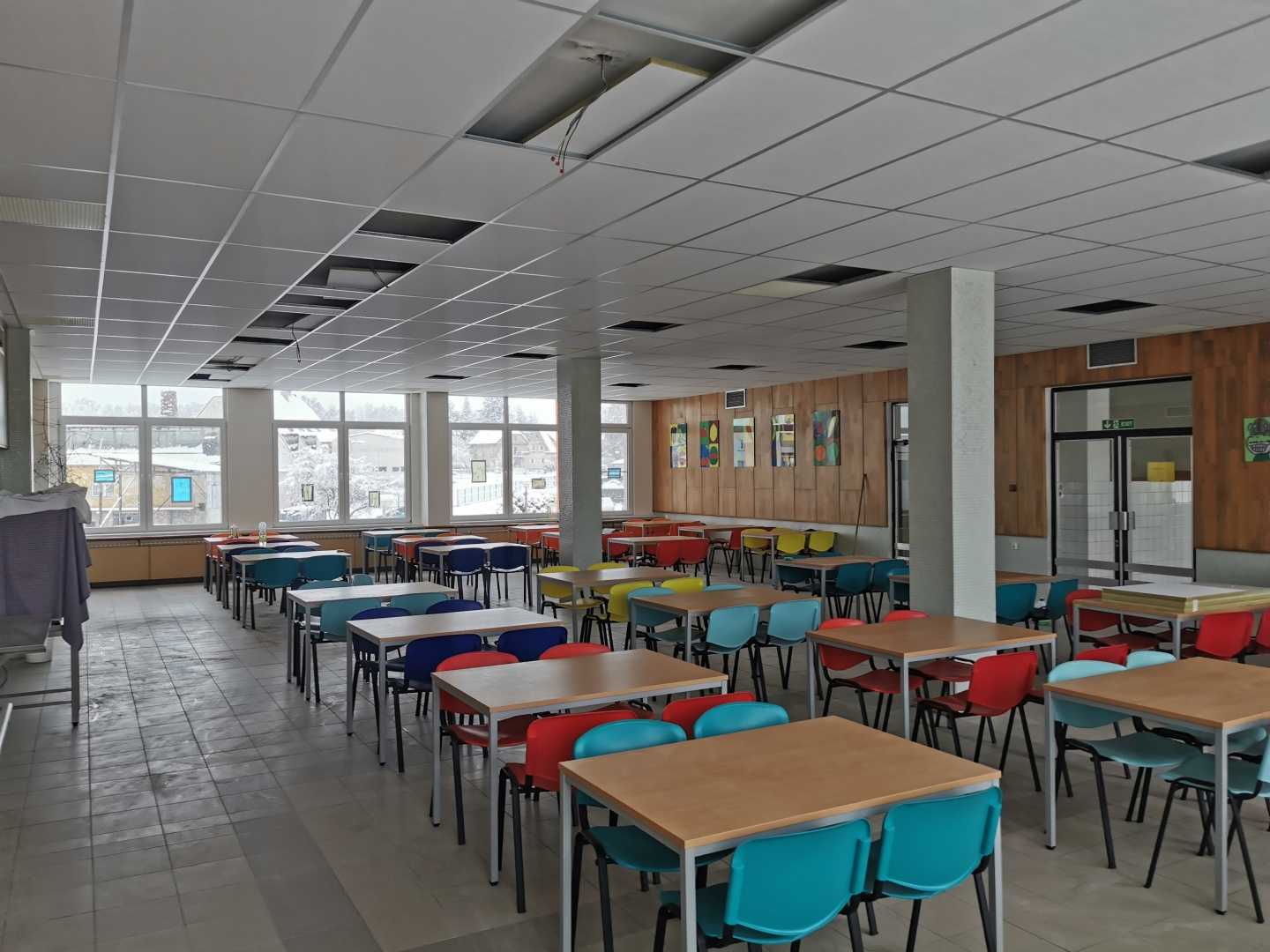 Snížení doby dozvuku ve školní jídelně pomocí francouzského systému Eurocoustic Tonga