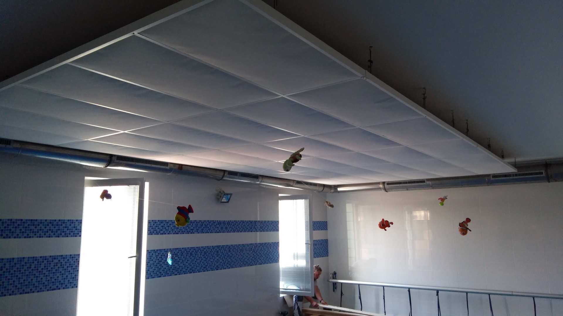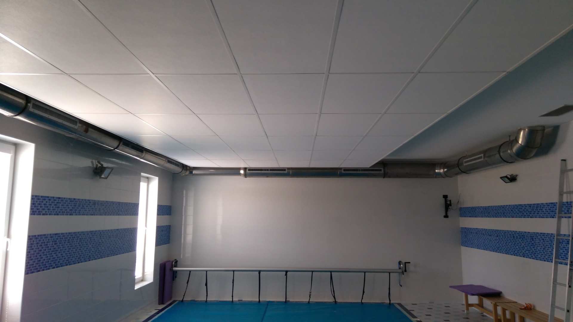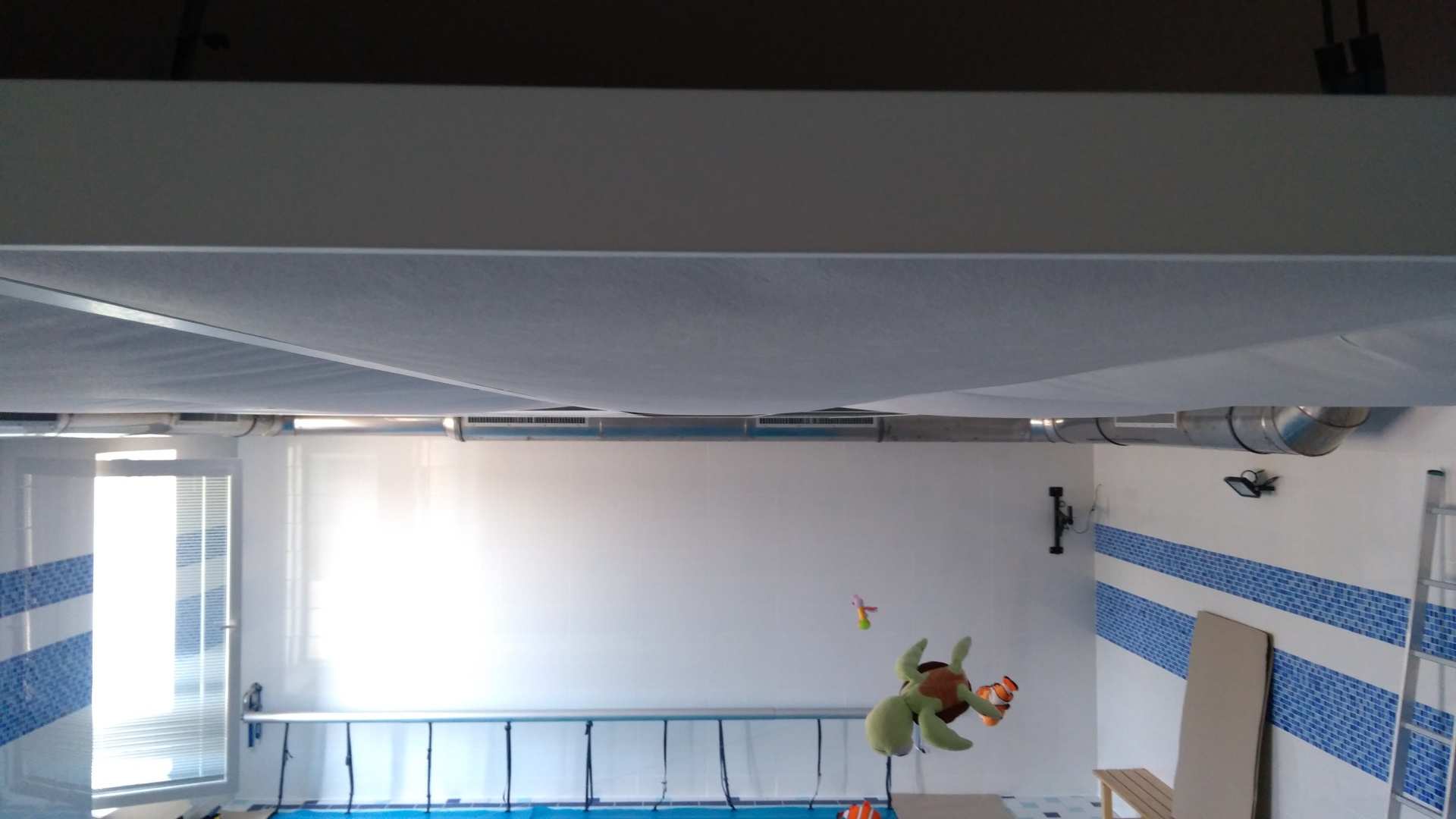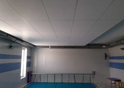 Výměna asi čtyři roky starých, prověšených akustických kazet v prostorách bazénu plaveckého centra Natrix v Úvalech. Nejprve jsme museli konstrukčně vymyslet jak nad plným bazénem kazety vyměnit, poté už šla práce hladce, původní kazety jsme demontovali a dodali nové. Doba realizace jeden den.