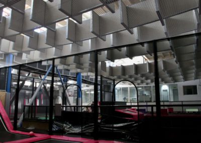 Zákazník, kterému jsme akusticky upravovali již dvě provozovny (Jump park Na Jarově, Lazer fun na Českomoravské), potřeboval pomoci s nízkou neprůzvučností stávající stěny v komerčním objektu na Zličíně. Po první schůzce vyplynulo, že jeho záměr otevřít velký projekt Jump Areny Praha nebude tak jednoduchý, protože prostor sousedí s filmovými ateliery, kde probíhá každodenně natáčení seriálu pro televizi. To znamená, že z jedné strany jsou skákající, výskající lidé a z druhé strany prostor naprosto náročný na ticho. Velice citlivé mikrofony snímaly veškeré nežádoucí hluky, dokonce i letadlo prolétávající v několikakilometrové výšce nad objektem. A v takových případech se natáčení přerušovalo. Vůbec největší oříšek bylo zadání, které umožňovalo montáž neprůzvučné skladby pouze z jedné strany, takže se jednalo o předsazenou stěnu.