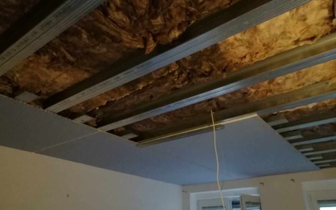 Samonosný strop na adrese Praha, Na Dlouhém Lánu Samonosný neprůzvučný strop Montáž samonosného neprůzvučného stropu k eliminaci hluku pronikajícího od sousedů, především dupání, byla zde možnost (bohužel všude to rozměry místnosti neumožňují) aplikovat systém...