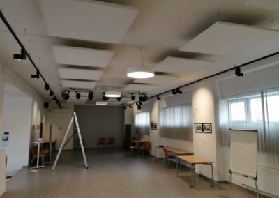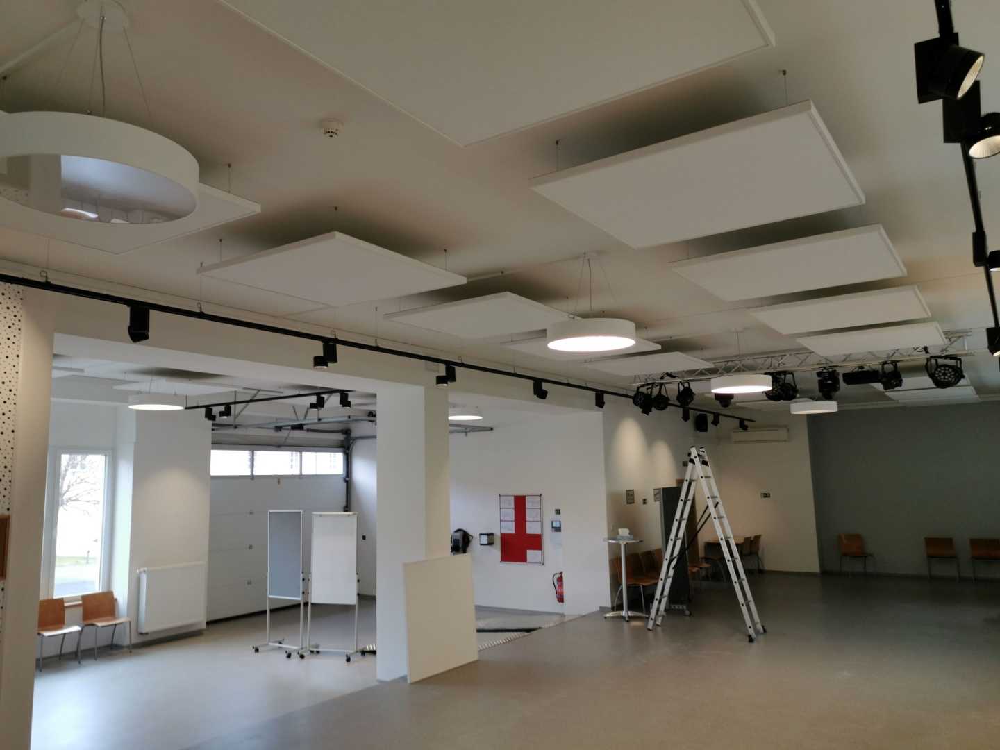 Zahájili jsme výrobu akustických volně visících panelů na ocelových lankách. Tento panel má výhodu, že jej lze montovat lokálně, bez předchozí demontáže stávajícího podhledu, montáž je velice rychlá a snadná.